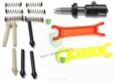 - w zestawie niezbędne klucze do regulacji, ustawień i zapasowe "sztyfty" odbicia strzał oraz sprężynki do regulacji twardości.