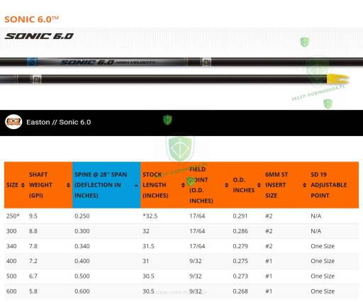 Easton Sonic 6.0 to promień Carbon Easton o średnicy 6mm (grupa Easton 6MM) gwarantująca wysoką prędkość, dokładność wykonania i precyzję trafień.