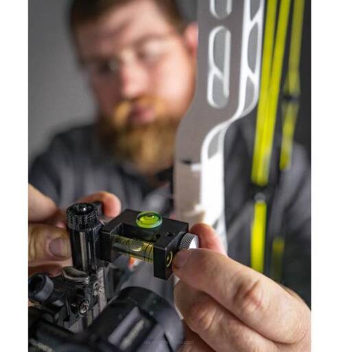 Poziomica zapewnia właściwy pomiar osi celownika łuku: