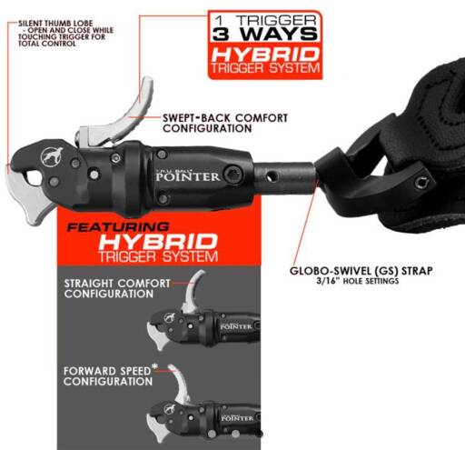 Pointer Flex to osiowo zaprojektowany spust przenoszący siłę z linii strzały i linii łuku na osiowo szczękę i nadgarstek.